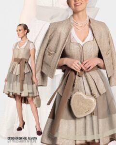 DESIGNERDIRNDL ALMUTH MIT TWEEDMIEDER IN TAUPE