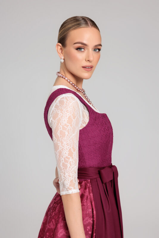 DESIGNERDIRNDL ALMUTH MIT TWEEDMIEDER IN RUBINROT